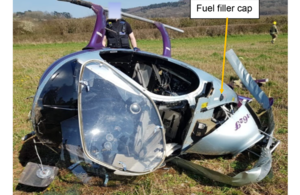 The helicopter, a Rotorway Executive 162F (G-JDHN), was in a stable cruise when the pilot heard a very loud noise which may have been caused by unburnt fuel igniting in the exhaust. This resulted in the helicopter reacting in a way that the pilot could not rationalise in the short time available, so he successfully autorotated to land in a field. At the end of the ground run, the left skid caught on uneven ground and the helicopter rolled over onto its left side. Both the pilot and passenger managed to escape with minor injuries.