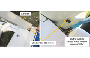 An on-site inspection of the aircraft revealed that the elevator was not connected to the elevator control rod. It is unlikely in this case that Positive Control Checks were carried out these offer the ability to detect a mis-rigging condition before flight.