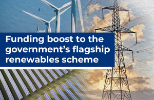 - 22 million boost for governments flagship renewables scheme, making available contracts for renewable power generation potentially worth billions of pounds in total over the schemes lifetime.