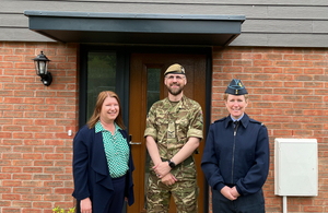 Lance Corporal Peter Mitchell was one of the first to pick up the keys to his new family home from the DIOs Head of Accommodation, Air Commodore Leah Griffin and DEO Army Programme Director, Belinda Lunn.
