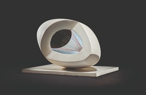 Sculpture with Colour (Oval Form) Pale Blue and Red embodies the Cornish sky, sea and rugged coastline, in which she lived and which influenced her so deeply. One of only a handful of stringed and coloured sculptures she produced during this period, it marks a significant evolution in her practice, bridging her pre-and post-war artistic developments. As such, this beautiful and immensely informative work by one of Britains greatest artists must be saved for the nation.