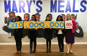 Scottish charity Marys Meals is set to receive 5 million from the UK Government in match funding, following an overwhelming response to its latest campaign from generous supporters.