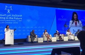 The International Development Secretary also joined members of the international community in the UAE to give a key note speech at a landmark conference about building the resilience of women and girls in the Arab region.