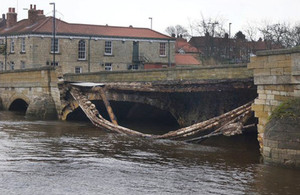 Ministerial Flood Recovery Envoy for Yorkshire Robert Goodwill today (10 January 2016) announced 3.3 million of funding for the restoration of the Tadcaster Bridge and the construction of a temporary footbridge to serve the community while work is ongoing.