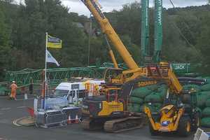 While the crane is situated on the A6 near Matlock Bridge, the road remains closed and a temporary 2-way traffic system on the bridge is now in place.