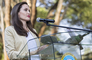 Ms Jolie participated in training delivered to military and police personnel involved in African Peacekeeping Missions who are often first responders following acts of sexual violence in conflict. She spoke to peacekeepers, police and civil society experts about their experience in preventing and responding to sexual and gender-based violence in conflict settings and in their communities. She participated in discussions about how personnel on the course can lead the way in changing attitudes and improving understanding of sexual and gender based violence in their organisations. The Special Envoy also took part in a roundtable discussion on PSVI chaired by the British High Commissioner, Nic Hailey, before an addressing students on the course.