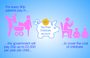 Youll be able to open an online account, which you can pay into to cover the cost of childcare with a registered provider. This will be done through the government website, GOV.UK. Tax-Free Childcare will be launched from early 2017.