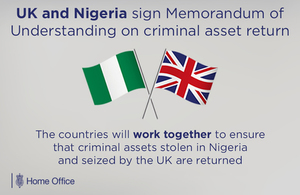 Crime of this sort is not confined to our own borders and it is therefore essential that we work with international partners to tackle it. This agreement spells out how the UK and Nigeria will ensure that criminal finances that have been misappropriated from Nigeria will be returned for the benefit of the Nigerian people.