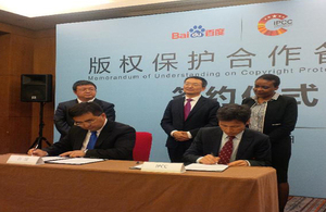 Chinas biggest internet search engine Baidu has signed a memorandum of understanding (MOU) on Copyright Protection Collaboration with the International Publishers Copyright Coalition (IPCC).