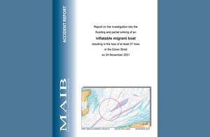Today, we have published our accident investigation report on the loss of at least 27 lives when an inflatable boat, carrying around 33 people, became flooded and partially sank during an attempt to cross from France to the UK on 24 November 2021. There were 2 survivors and 4 people remain missing.