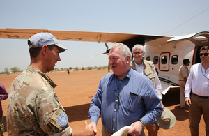 After leaving Bentiu and Malakal, the Minister travelled to Juba and met Defence Minister Kuol Manyang Juuk, UN Special Representative David Shearer, and Commanding Officer of the UK engineers in South Sudan Lt Col Jason Ainley.