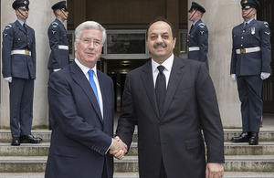 Mr Fallon hosted Qatars Minister for Defence Affairs His Excellency Dr Khalid Bin Mohammed Al Attiyah in London to reaffirm the commitment to tackling terrorism, including in Iraq, Syria and Libya, as well as joint training between the UK and Qatar.
