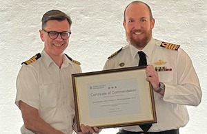 Commander Chris Fingleton, Royal Australian Navy (pictured receiving his Commendationahead of his promotion and move back to Australia).