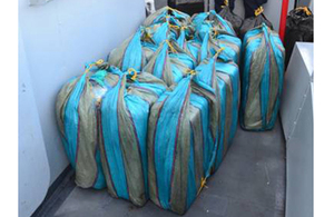 The Honduras-bound yacht was stopped and searched by a US Coast Guard team in the Canadian ship HMCS Summerside and 304kg of drugs were discovered onboard. HMS Mersey sent a small team on her fast boat a Pacific 22 rigid inflatable - to take charge of three suspects and bring them back to the ship. As darkness fell the team then returned to collect 16 bales of cocaine, which have a wholesale value of approximately 12,000,000. The drugs were then passed on to American law enforcement officials aboard the US Coast Guard Cutter Thetis.