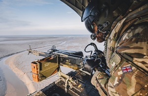 During the exercise, the Chinook fired twin M134 Miniguns and single M60D General Purpose Machine guns at a mix of purpose-built targets.
