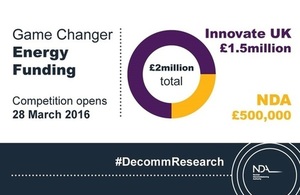 Innovate UKs Energy Game Changer fund, announced last year, now stands at 2 million including NDAs contribution. It will be distributed to innovative Small and Medium-sized Enterprises (SMEs) outside the energy sector.