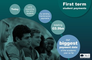 The Student Loans Company (SLC) has paid 0.9 billion in first term Maintenance Loan payments into students bank accounts across the UK today (Monday 23rd September).
