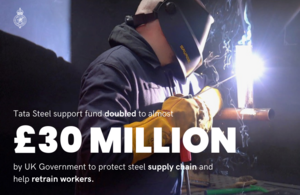 The UK Government is announcing a 15 million boost to steel support funds, more than doubling the funding available to support supply chain businesses and workers affected by changes at Tata Steels Port Talbot site.
